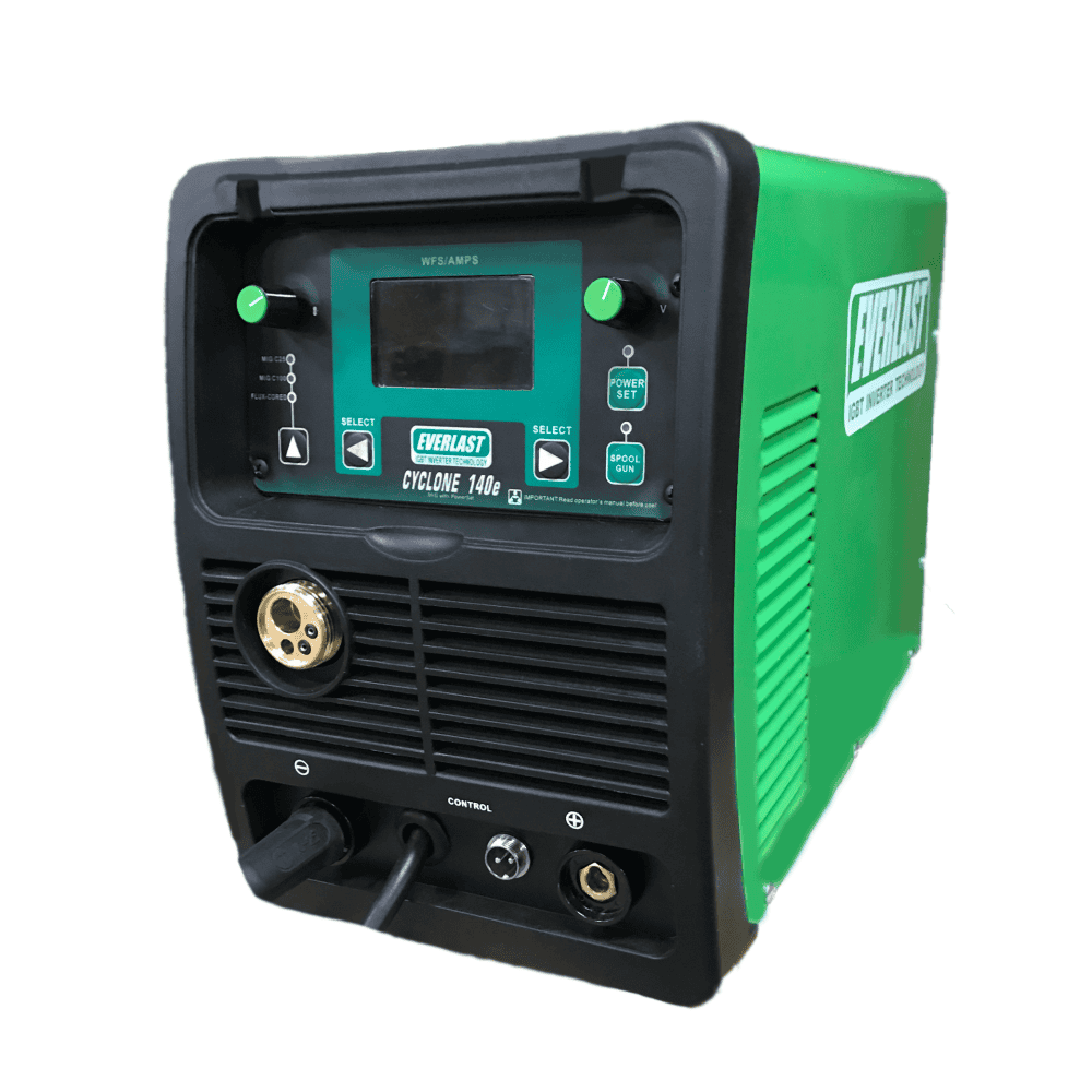 For more than a decade, Everlast has been at the forefront of pioneering the advancement of reliable and cost-effective inverter MIG welders. The legendary success of the original i-MIG inverter series is well-known. The introduction of the inverter-based Cyclone140E caused a stir in the industry, leaving others scrambling to catch up. While competitors were attempting to fit outdated transformer technology into smaller frames to compete in the lightweight 120V, 140A MIG class, Everlast was already working on a new second generation. With the launch of the new “Economy” class of welders, Everlast once again leads the industry. The Cyclone 140E is a highly advanced 120V inverter MIG unit that is both affordable and top-of-the-line. The addition of the PowerSet mode makes setup easy for beginners and professionals alike. The unit also features a user-friendly LCD screen for precise control over voltage and wire feed speed. The sleek design ensures portability, allowing customers to take the unit wherever it is needed. With an impressive duty cycle and unmatched power, the Cyclone 140E outperforms competing transformer models on the market.