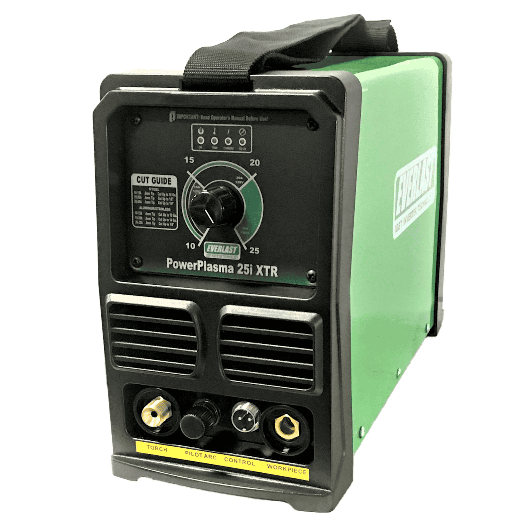 For those looking for the ultimate 120V only plasma cutter with the best cutting performance and portability in the industry, the Everlast PowerPlasma 25i XTR delivers. With a maximum of 25 Amps output, the unit will sever up to 3/8″, but also will deliver beautiful cuts right up to 1/4″ thick with decent cut speed and low amounts of dross. With a modern, blow-back style torch the unit avoids the pitfalls of old cheaper High Frequency designs, which include electronic interference and constant maintenance of the High Frequency points.