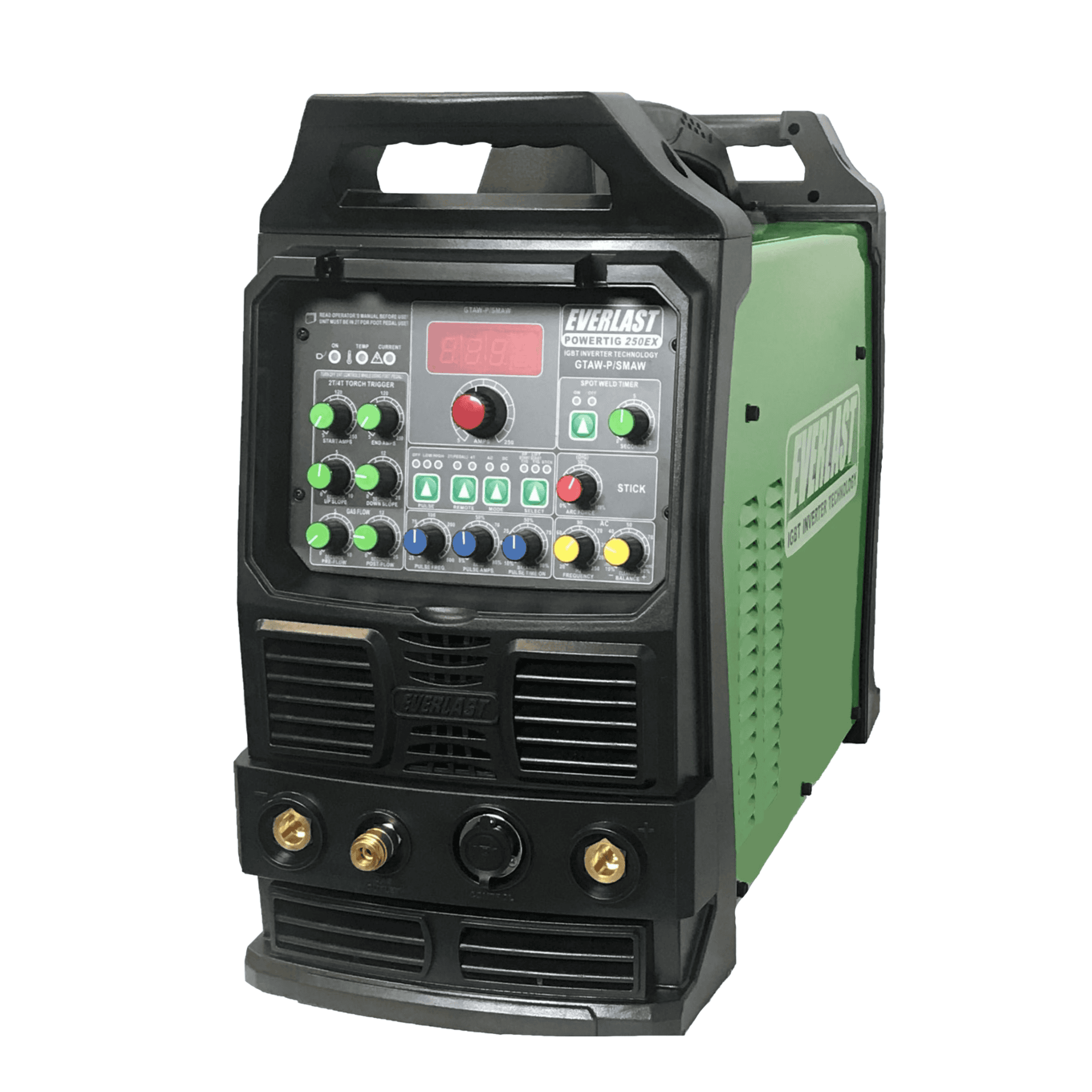 Equally suitable for both the welding enthusiast and the professional in need of a well-equipped AC/DC TIG welder, the Everlast PowerTIG 250EX is a versatile solution. This unit is a true performer, putting out 250 amps of TIG welding power on single phase 240V, with a 60% duty cycle while doing so. Feature for feature though, it delivers as well. The unit is equipped with features like fully adjustable pulse, AC frequency, AC balance control, stick function with arc force control, and 2T/4T remote control functions. It even includes a spot weld timer for those needing to make routine, perfectly timed spot welds on sheet metal. The IGBT inverter module reduces size and weight of the unit and keeps it portable. For those needing to weld thin gauge material, the unit features low amp start capability in both AC and DC modes, down to 5 amps. The PowerTIG 250EX has built a name for itself in the industry as a capable and economical welder and the latest generation continues that legacy.